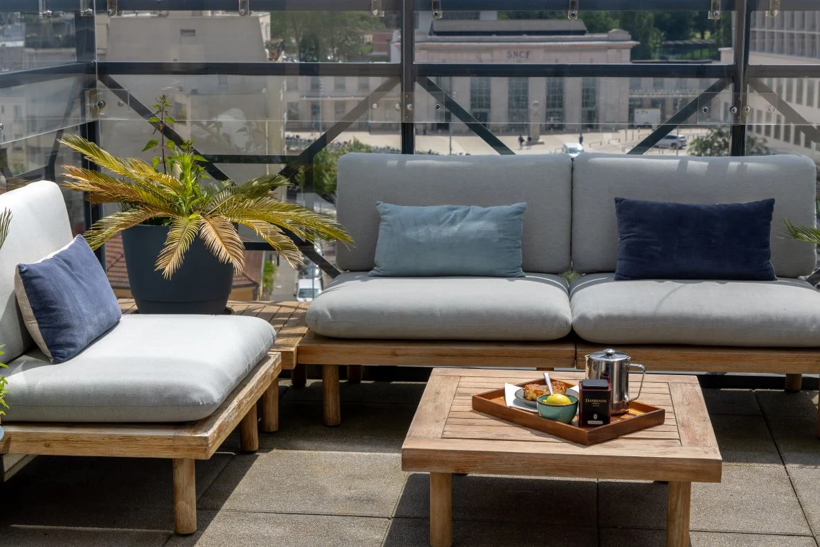 Rien de plus agréable qu’un savoureux petit-déjeuner pour démarrer la journée en beauté ! Rendez-vous au 6ème étage qui offre une vue panoramique sur Versailles. Un buffet 100 % français vous attend avec des viennoiseries, des confitures, des fromages et des yaourts, le tout accompagné de boissons chaudes et de jus de fruits frais.